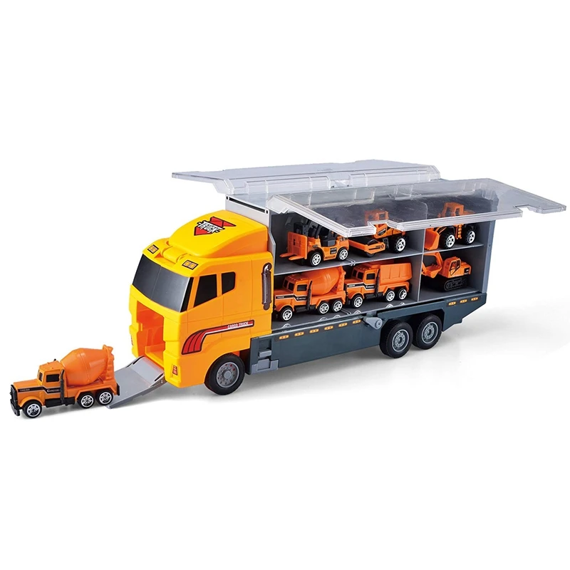 REVIEW TOP SELLER 12Pcs/Set Mini Diecast Alloy Car 2In1 Model Engineering Toy Vehicles Carrier Truck with Ejection &